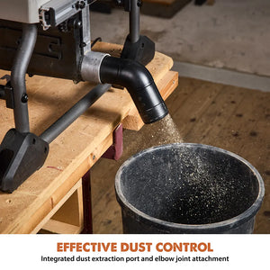 - Integrated cross-cut sled for improved workpiece stability and safety.