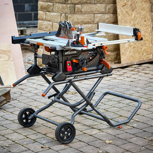Evolution R10TBLX Multi-Material Table Saw with Wheeled Scissor Stand | 10 in. Multi-Material Cutting Blade