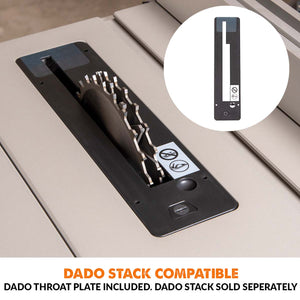 - Dual rack and pinion fence rails ensure precise rip cuts.