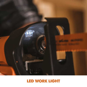 - LED work-light next to the blade provides greater visibility around the cutting area.